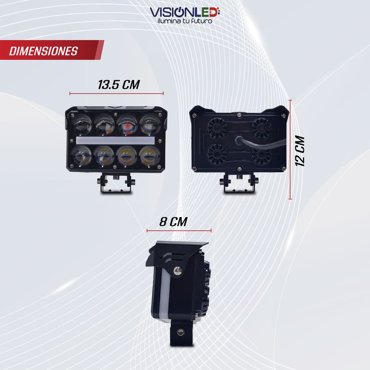 Desde el primer uso notarás su iluminación mejorada en un 50%, gracias a su sistema de 8 lupas de alta intensidad que proporcionan un haz concentrado y profundo. Además, incorporan función bicolor con filo RGB, permitiendo un estilo moderno y mayor presencia en tu vehículo.