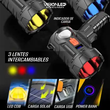 Disfruta de contar con la linterna ideal para todas tus necesidades. Fabricada con materiales resistentes y de calidad. Con sus sus lentes intercambiables se adaptará a todas las situaciones en las que necesites contar con buena iluminación. 🤩